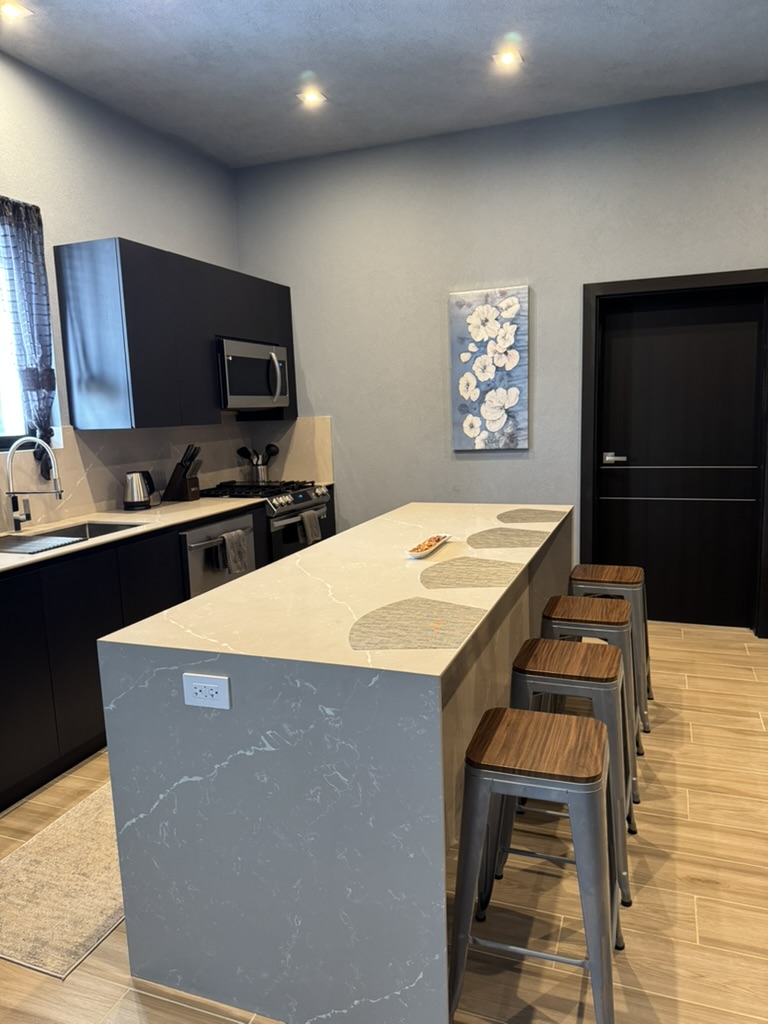 The EHA Signature Contemporary is a single-story home with exterior stair case leading to a 2000sf rooftop providing owners with a variety of expansion options ranging from a second story for extended family/personal use, a separate dwelling for long or short-term rental with private entrance or simply an expansive rooftop terrace from which to enjoy sunsets, stunning vistas of neighboring St Maarten, dinning under moonlight or seasonal fireworks.